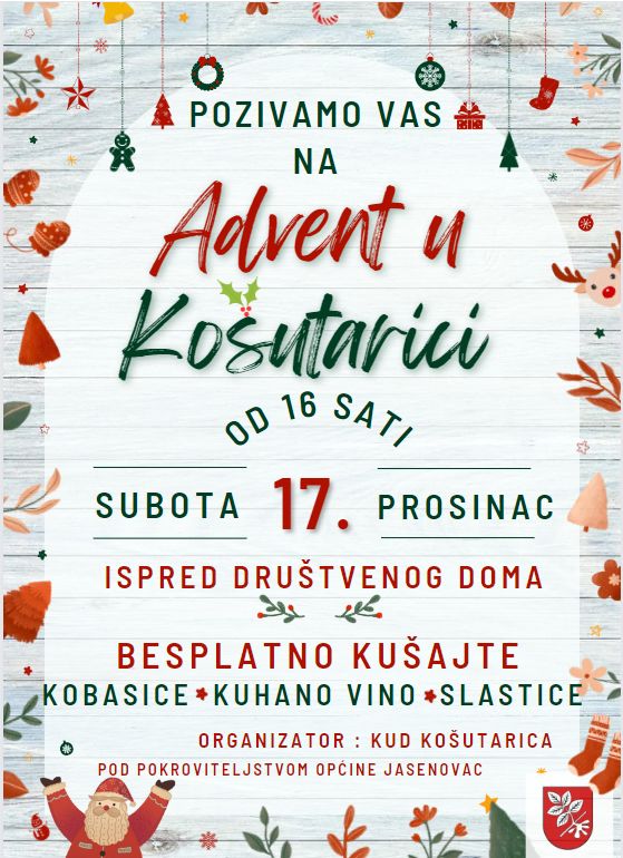Članovi kulturno umjetničkog društva “Košutarica” prvu su adventsku svijeću upalili na Adventu u Jasenovcu održanom 02.12.2023. u prostorijama Pučkog doma u Jasenovcu uz zvuke tamburaškog sastava “Ambar”. Zahvaljujemo se Općini Jasenovac i Turističkoj zajednici Općine Jasenovac na pozivu.
